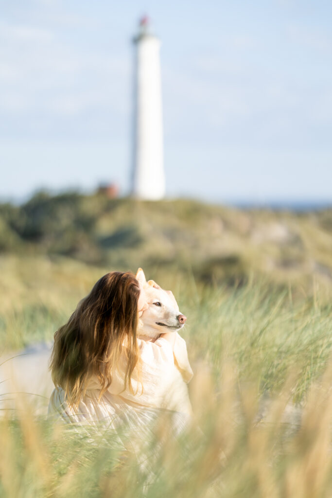 I søndags havde jeg fornøjelsen af at følge Christina og Nabi med deres søde hund Cooper til en helt særlig fotosession ved fyret Lyngvig Fyr – beliggende mellem Søndervig og Hvide Sande på Holmsland Klit. Dette kystlandskab ved Nordsøen byder på den perfekte kombination af naturlig vildskab og blid romantik – ideelt til autentiske portrætter med jeres hund.